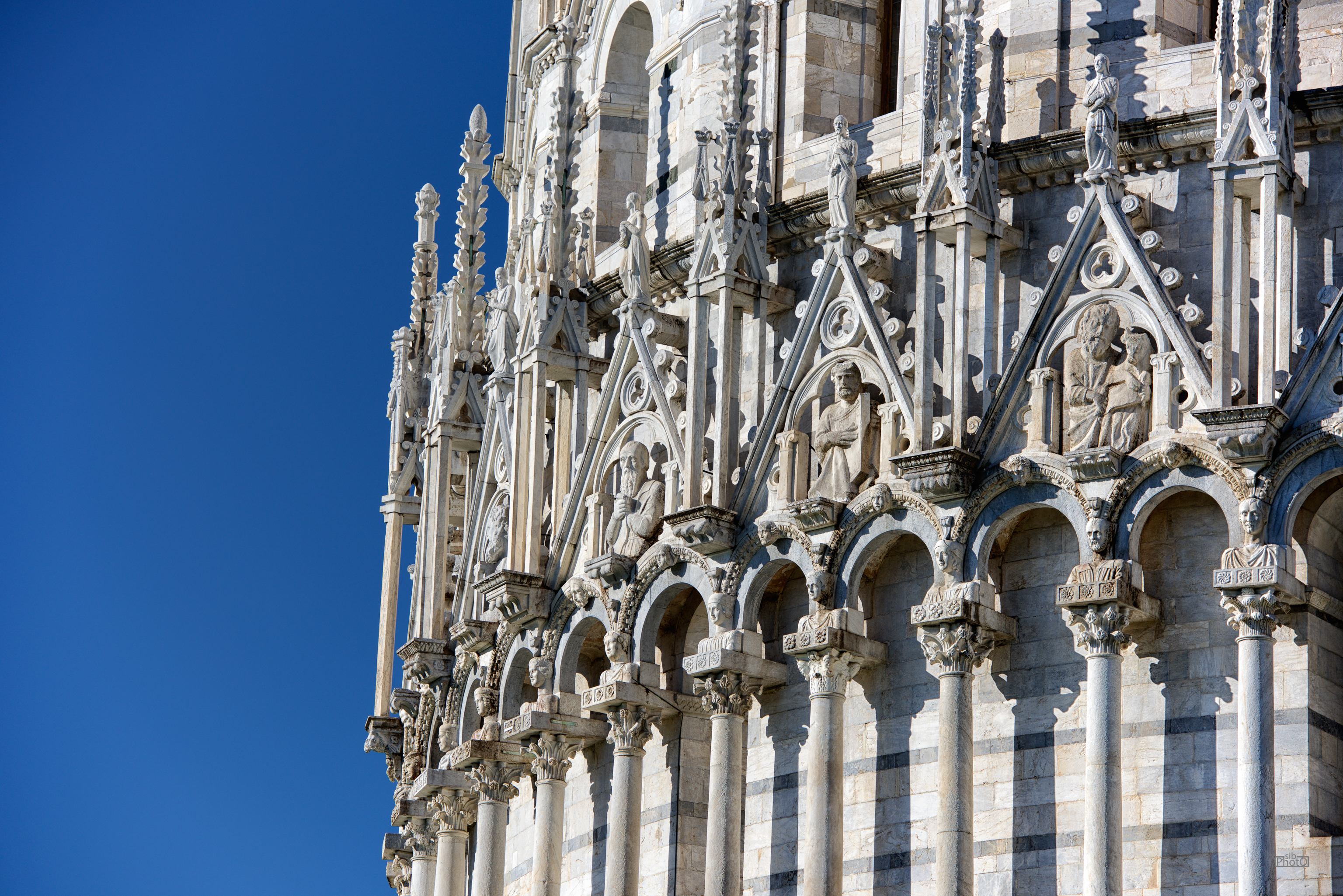 The Baptistery of San Giovanni Battista in Pisa is a remarkable example of architectural transition from the Romanesque to Gothic styles. It is enormous, standing about 55 meters high with a circumference of 107 meters, making it the largest baptistery in the world. Construction of this magnificent structure began in 1153 under the direction of architect Diotisalvi and continued for over two centuries.
