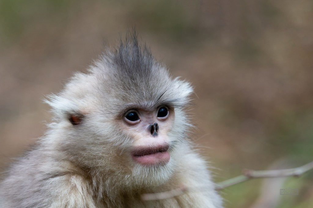 These monkeys, Rhinopithecus roxellana, are threatened, with a population of perhaps 10-15,000 in the wild across three subspecies. They live at moderate altitude, about 4,000 – 10,000 feet, in troops of about 100 individuals.