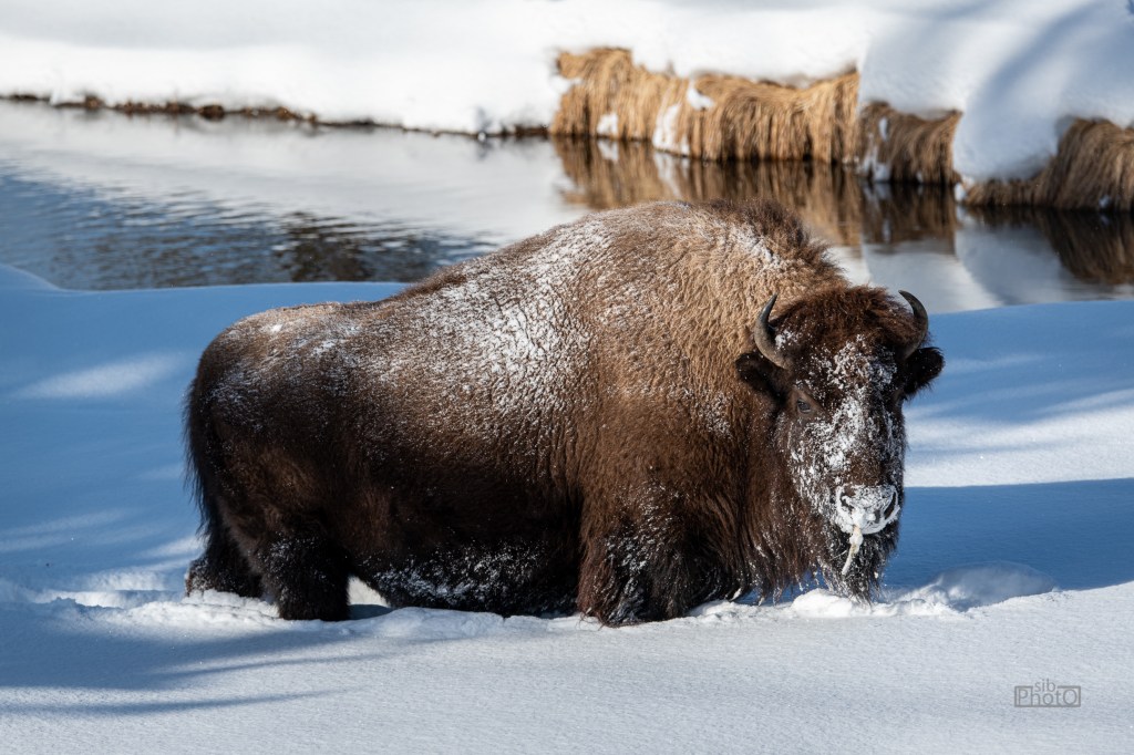 Bison are the largest mammals in North America, with males reaching 2,000 lbs (900 kg) and 6 feet (1.83 m) high. They are not bothered by cold temperatures ranging down past -40 degrees. When a bull is staring at you from 20 or 25 yards away, the fact the they are herbivores isn’t so comforting!