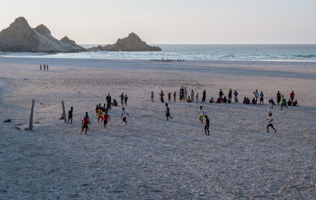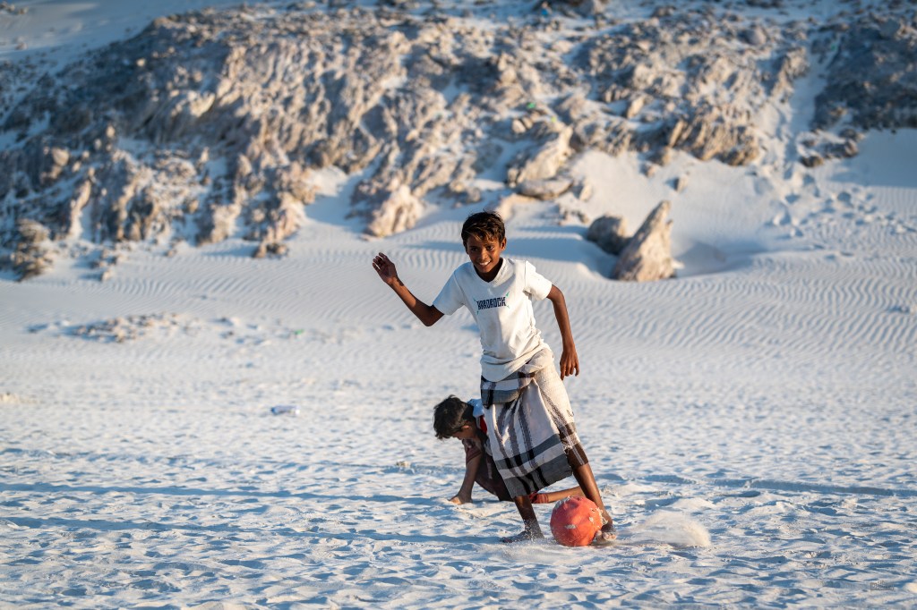 A town of about 4,000 people on the northwest coast of Socotra, Qalansiyah is primarily a fishing village. We camped right on the beach about a mile north of town, near the beautiful Detwah lagoon. In the evening, we watched a group of young people play soccer / football on the beach, then saw the sun go down over the lagoon.