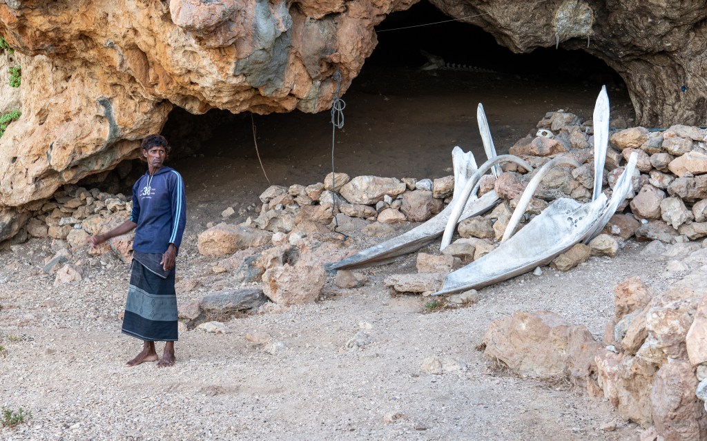 Further up the beach lives the “hermit of Socotra,” Ellai (sometimes known as Abdullah). He was kind enough to demonstrate his fishing technique, show us the whale bones from his personal story, and invite us into the cave in which he lives.