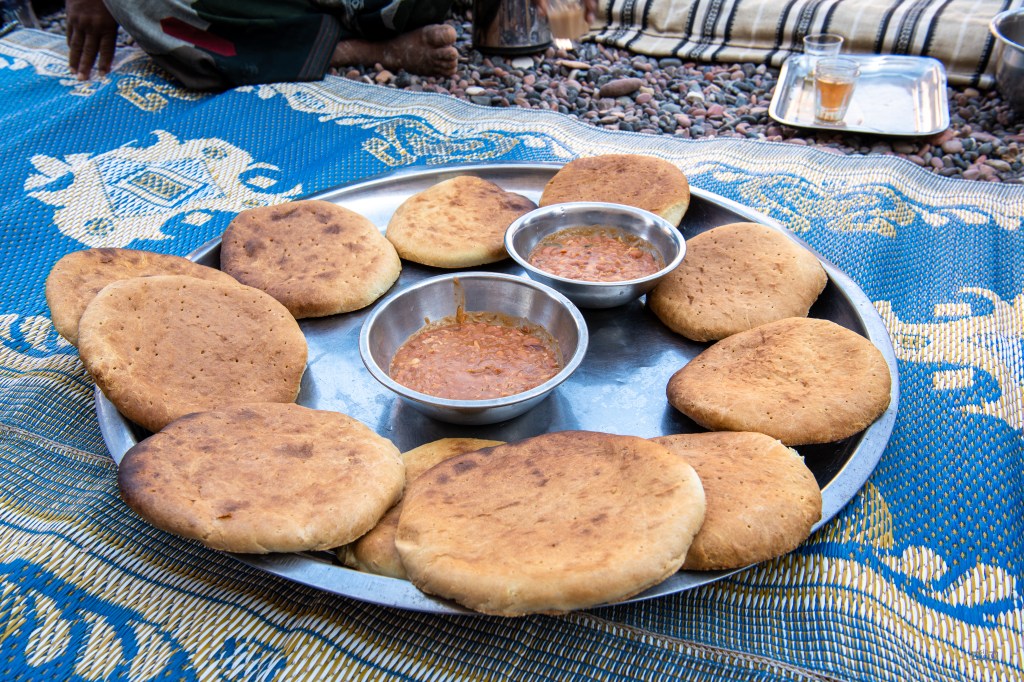 We camped nearby at Aomak and were able to join a group of local men for a breakfast of tea, fresh-made bread, and dates (compressed and preserved in a goatskin).