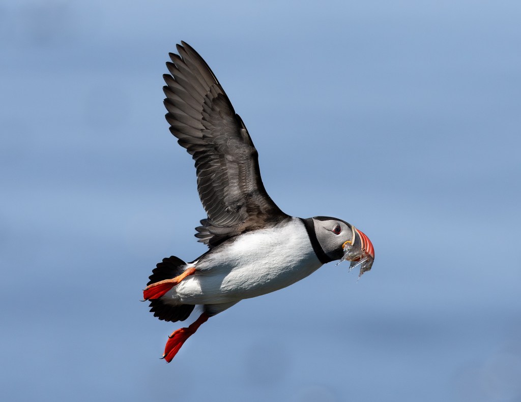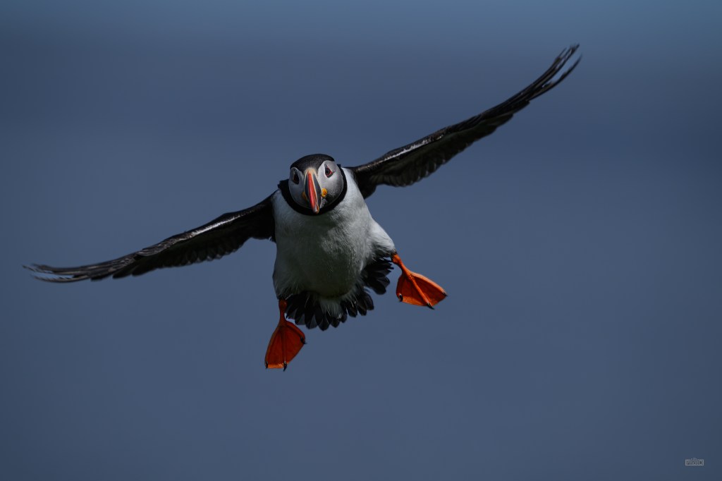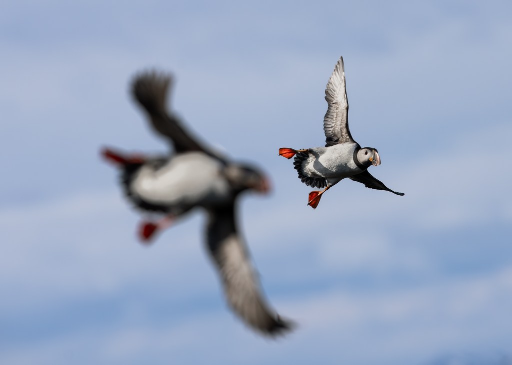 While not as hard to shoot as small songbirds, as they don’t move very erratically, the puffins do fly extremely fast. It’s a fun challenge to track them as they zoom across the little bays and look for a spot to land.