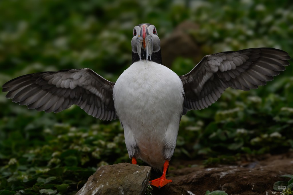 Interestingly, the puffins do not always go immediately back into their burrows when they return from a fishing trip, so you frequently see birds just standing around with a mouthful of fish.