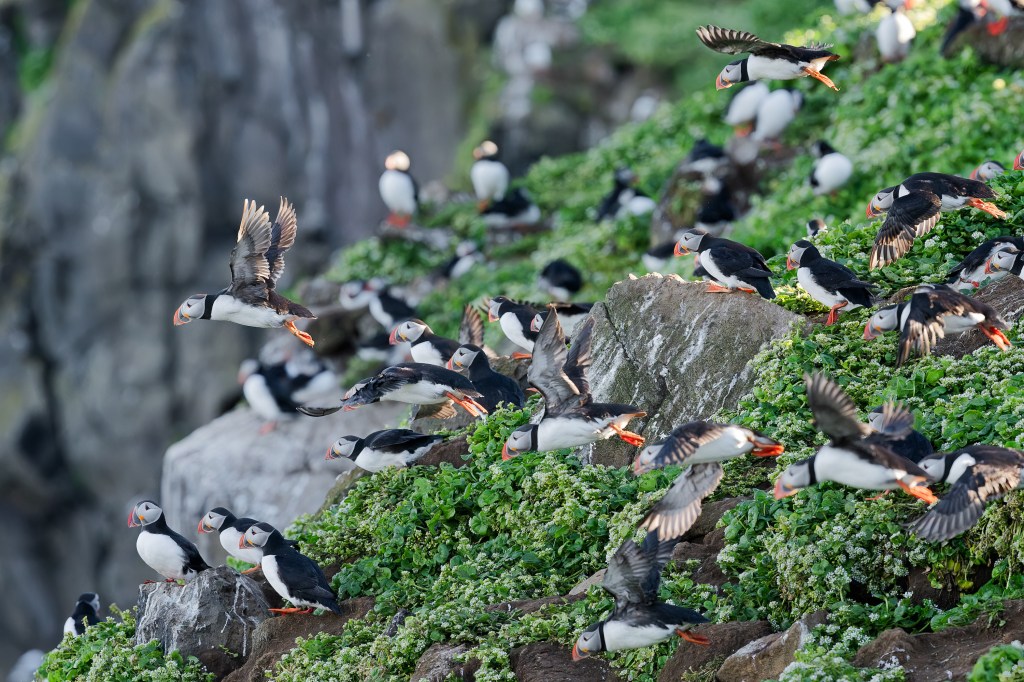 Inhabited by only a couple of dozen year-round residents – perhaps 50-60 people in the summer – Grímsey is home to a huge breeding colony of Atlantic Puffins (Fratercula arctica). About 60 percent of the world’s puffins nest in Iceland and Grímsey hosts by far the largest group. No one knows exactly how many birds there are here, but there are hundreds of thousands of puffins.