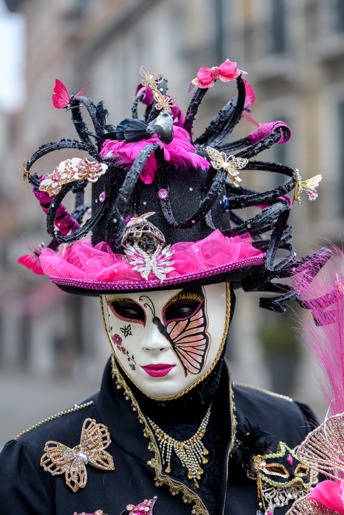We went with the goal of photographing the costumed participants, known universally as “Masks” (or maschere in Italian). Let’s be clear: these are not your average last-minute party outfits. These are walking works of art.